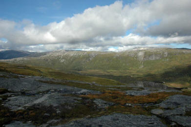 Vi holder allikevel god fart bortover fjellet her og bestemmer oss for å gå ned mot Kalvkruvatnet før vi tar pause.