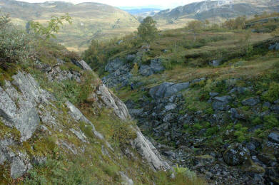 Endelig nærmer stigningen seg opp mot Klarem - vi er spente på om det er noe igjen av husene her inne!