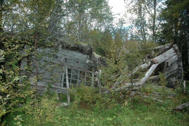 Så dukker fjellgården opp i mellom trær og kratt. Ganske så typisk er heimjorda forholdsvis lite gjengrodd, men de trærne som har knepet seg fast er digre. Naturen tar tilbake sakte men sikkert.