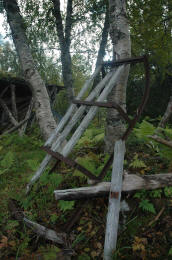 Det virker nesten helt merkelig at saga og ljåene kan stå å balansere slik på veggen - de står klare til bruk!