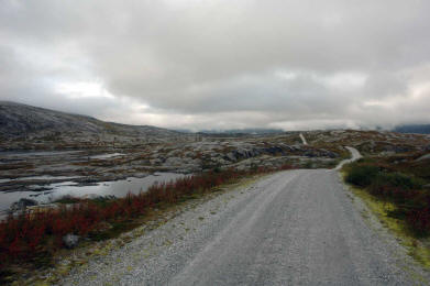 Vi er veldig spente på hvordan veien er innover her. Både kvaliteten på veien og om det er mye motbakker, men det viser seg ganske fort at dette var en flott vei uten mye hull og stein, og det er ikke mer motbakker enn at det må vær såpass :) Stigningene er akkurat passe. Det ligger noen få utleiehytter innover her - som man kan leie på inatur. Da får man også nøkkel til bommen, slik at man kan kjøre innover denne veien.