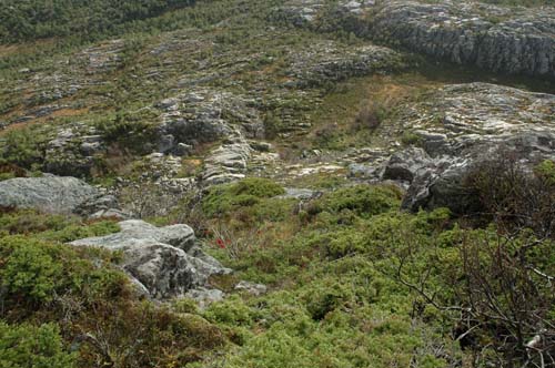 Når jeg kom et stykke opp studerte jeg fjellryggen grundig. Det var lyng og