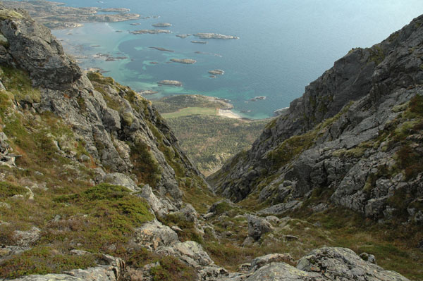 rå utsikt langs med eggen bort til Trollvasstinden! Her ned mot stranda og