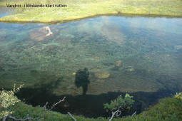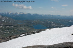Jeg går bort til vannet - over isen - og fyller drikkeflasken før jeg lusker videre. Planen er nå klar - jeg skal bort til Kvannlitinden og gå ned mot Tosdalen! Denne turen ser jeg frem til..