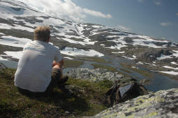Jeg har her vært underveis i ca 2 timer - nydeig utsikt mot dalføret (som de fleste forbinder med en utrolig kjedelig E-6)