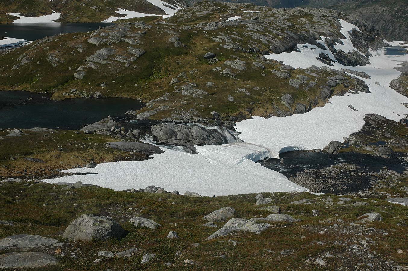 Jeg legger ut detaljerte bilder i fra denne nedfarten for de som kunne ha lysst til å se det. Tjønnene ved Keilåtinden