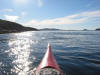 Primærmålet med denne turen var å få testet ut nyinnkjøpt padleåre. Lendal Archipelago som jeg handlet på Ute (på tur) i Trondheim. Det blåste ganske friskt fra øst. Planen var å padle Torget rundt, men etterhvert som jeg padlet mot Toftsundet, fant jeg ut at jeg skulle padle Torgnessundet og ta ting på sparket derifra. I sommer padlet vi Sauren rundt, og jeg bestemte meg etterhvert for å ta samme turen, bare motsatt vei. Knipset noen bilder fra Prestøya mot Hornstinden og Vegafjellene. Da jeg hadde passert Torgnesbroa fant jeg ut at jeg skulle padle lengre vestover mot Trollholmen og etterhvert fant jeg et sund som svingte tilbake mot Toftsundet. Det var sterk motstrøm i disse sundene og hver gang jeg tok et bilde måtte jeg padle som bare det for å komme i gang igjen. Passerte en skarv som stod å tørket sine vinger på en lykt. Akkurat da jeg skulle knipse bilde av ham slo han sammen vingene igjen. Typisk. Det var varmt (14-15 ° og knallsol), og jeg hadde feilberegnet litt på vannet, så derfor fant jeg ut at jeg like godt skulle padle hjem uten pause. 3 timer i kajakken med hard padling er rimelig tøft, men desto bedre å komme i land da. Det har vært tørt ganske lenge så derfor orket jeg ikke begynne å lete etter bekk eller gå på land for å hente vann. Åra: den var kjempebra. Som en fjær. Kun 790 Gram, og den sparket veldig godt ifra i vannet. Formen er akkurat lik den jeg hadde fra før, og jeg justerte vinkelen og lengden lik som den jeg hadde fra før. Jeg tviler på at jeg hadde klart å padle så hardt så lenge med den gamle åren.