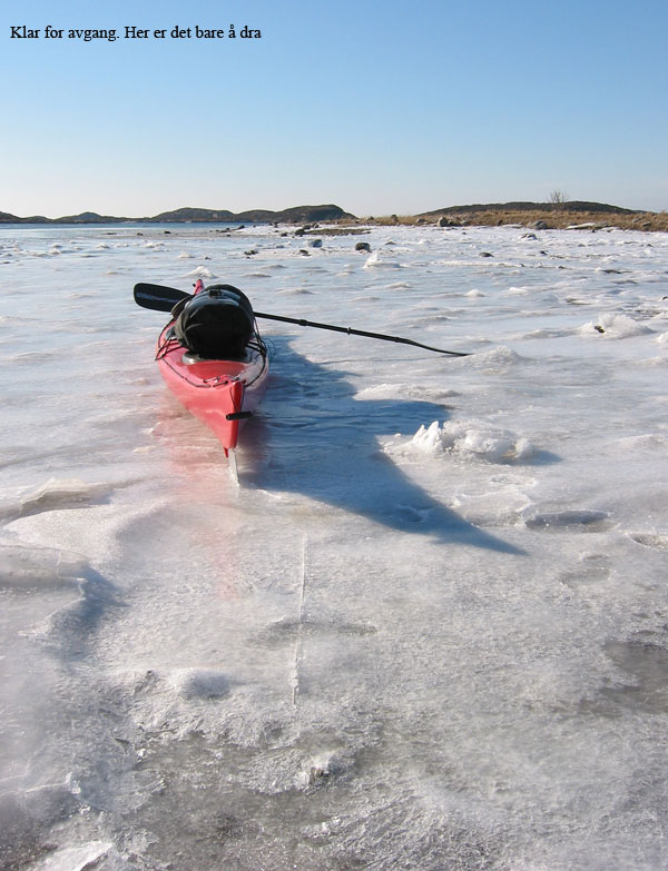 isen og dra den som et akebrett bort igjennom isen. Jeg klarte å entre kajakken