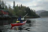 både kajakken og skiene med innover, for om mulig å få en kajakktur, og