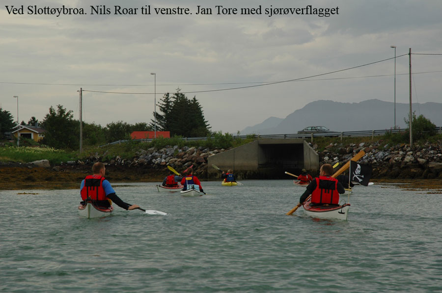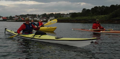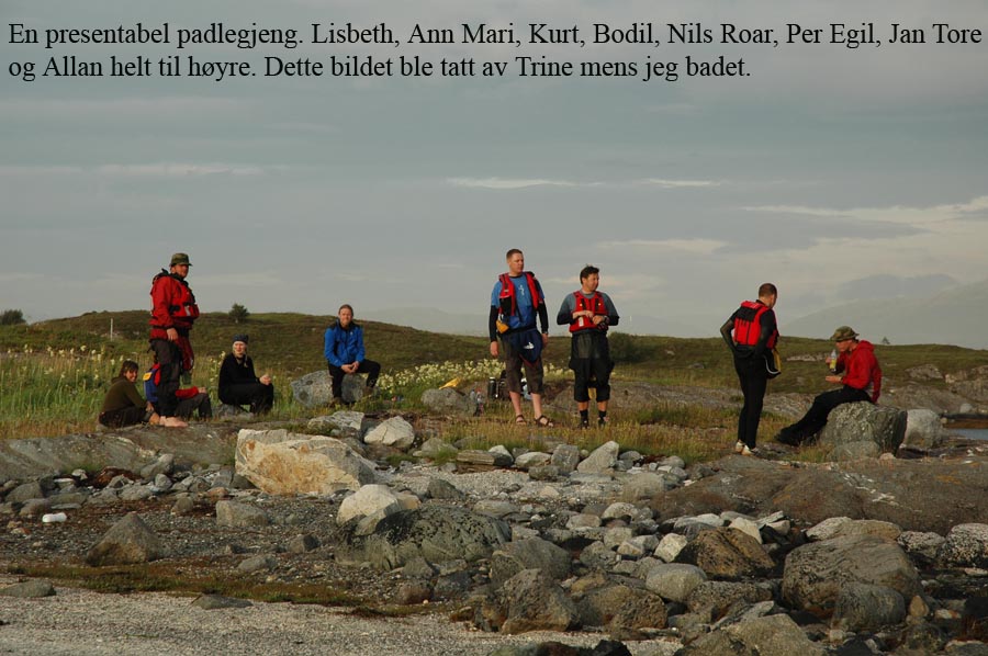 Nils Roar, Allan, Jan Tore, Per Egil, Trine og Terje i toer kajakk, Bodil og