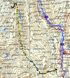 salt og krydder. Sekken var lett ja! Hvor skulle jeg sette kursen? Jeg visste at det var 3 km ca ned til veien, og deretter var det to valg. Nordover eller sørover. Oppover igjen var uaktuellt siden matsituasjonen var litt prekær. Jeg hadde bilen i Tosbotn, og bussen fra Mosjøen gikk kl 1645. Det ville bli ca 20 km å gå til Mosjøen, og det samme motsatt vei. Om jeg gikk til Mosjøen var jeg sikker på å skyss, haik eller lignende men det fristet ikke. Jeg følte meg ikke presentabel i det hele tat. Buksen var revnet hele skrittet rundt, og på kneet. Jeg var glad jeg hadde en stor lang snutebag på kameraet foran :) Gikk jeg til enden av Eiterådalen ville jeg kunne gå gjennom Stavassdalen og ned til Trofors. Jeg valgte denne ruten. Jeg hadde kun kart for Eiterådalen, så jeg ville få et spennende møte med overgangen til Stavassdalen. Det eneste jeg hadde å hjelpe meg med var et oversiktskart over Lomsdalen i A4 format. Grunnen til at jeg valgte denne ruten var at jeg hadde dagen foran meg. Så ingen grunn til å sitte i Mosjøen hele dagen. Om jeg kom for sent til bussen visste jeg at min svoger ville passere på kveldingen, og bare jeg kom meg til vei med mobildekning ville "kredittkortskyss" til bilen være helt kurant.