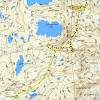 Jeg begynner nå å bli "klar" etter en lang vandring. Utrolige mye myr, og jeg begynner å savne fast grunn under føttene. Jeg skulle nok hatt meg noe mat. Ved Stavvatnet kommer jeg endelig inn på noe som ligner en sti, og etter hvert dukker en Gapahuk opp. Jeg var sliten når jeg satt der. Det er flere minnesmerker i dette området etter krigen. Jeg går ikke bortom disse minnesmerkene på min ferd. |