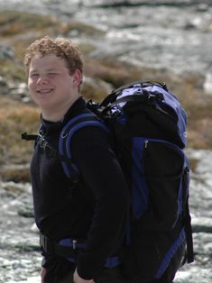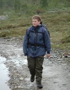 Martin klar for tur. Turen beregnes til 8 timer av DNT. Det er 750 meter stigning opp til Mellomfjellet, og distansen er ca 22 km.