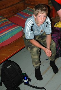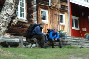 Fra Turistforeningens sider:Trollheimshytta (540 moh.)Trollheimshytta ligger lunt til i storfuru- og bjørkelandskap med vid utsikt til fjellmassiver og topper som kranser Folldalen. Hyttas sentrale beliggenhet gjør den til knutepunktet for fjellvandrere fra Gjevilvasshytta, Jøldalshytta, Bårdsgarden og Kårvatn. Turmuligheter er mange midt i Trollheimen og hytta danner et godt utgangspunkt for topptur til Snota og andre spennende topper. Trollheimshytta er Trondhjems Turistforenings første hytte i fjellet, og den eldste delen av hytta er over 100 år. Vi la oss rimelig tidlig her i denne hytten, etter middag og kortspill! Martin slo alle i Nervøs, men jeg slo Espen! :) Som vanlig sov vi veldig godt! |