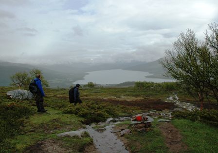Martin og Espen.. Vi skimter Gjevilvatnet, men vi har fortsatt 6-7 km igjen.