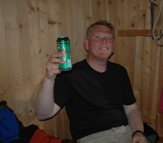 Vi synes den siste biten er lang. Vi er gjørmete og våte etter å ha gått i regn og våt snø-terreng hele dagen. Når vi kommer frem er badstuen varm og vi får oss en varm dusj og ikke minst den før nevnte maten som er på høyde med det beste i.... :)
